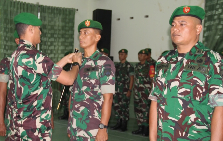 Usai pelaksanaan upacara, kegiatan dilanjutkan dengan pemberian ucapan selamat kepada para prajurit yang memperoleh kenaikan pangkat sebagai bentuk apresiasi dan kebanggaan atas capaian yang diraih.